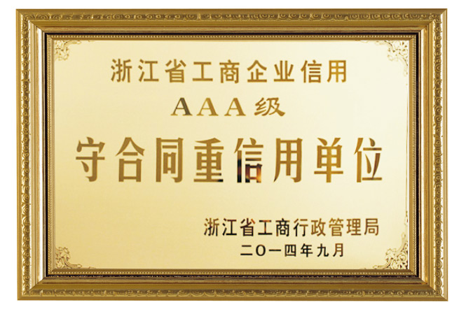 浙江省工商企業(yè)信仰AAA級守合同重信用單位
